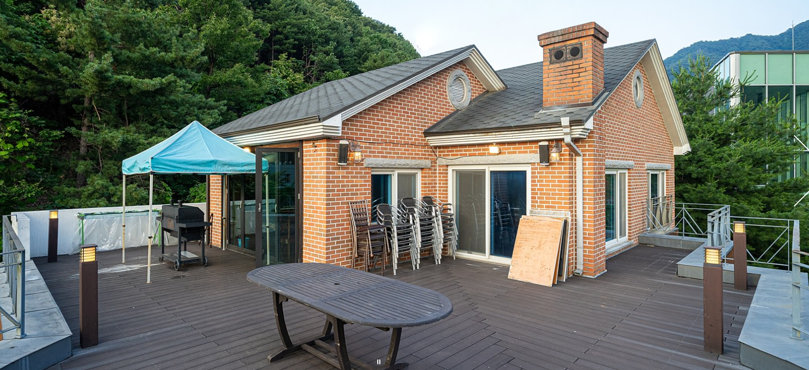 2층 단독 펜션으로 기본적으로 6인 기준에 최대 10인 기준이라고 합니다. 그러나 평수가 넓고 구조가 잘 빠져서 저희 회사 여성 임직원 16명가량이 묵었습니다. 물론 추가 요금은 1인당 2만 원씩 과금되었고요. 어지간한 단체 행사는 충분히 소화 가능한 규모입니다. 바로 옆으로는 아담한 풀장을 끼고 있어 아이들을 데려가는 분들에게는 더 좋을 것 같네요.