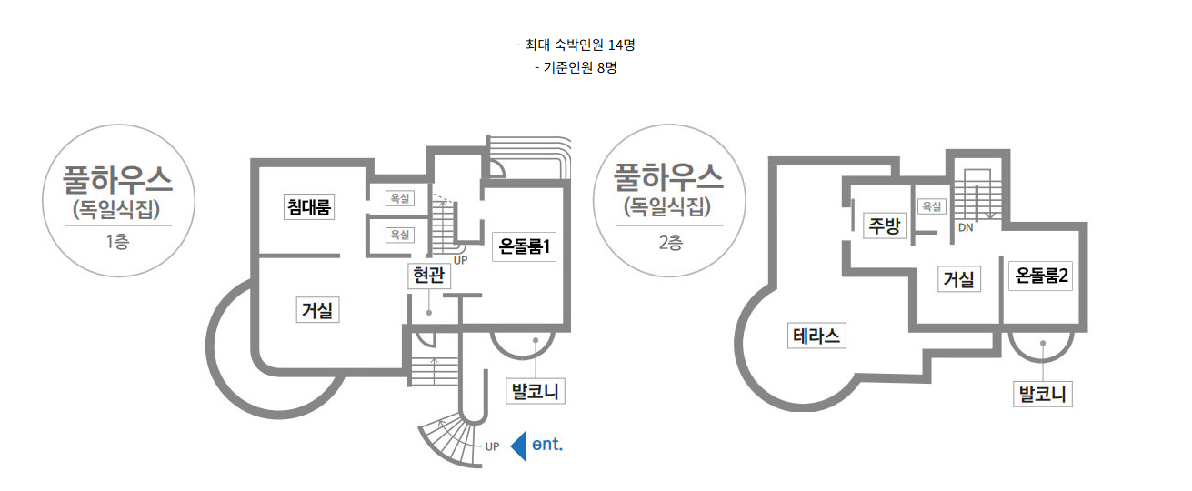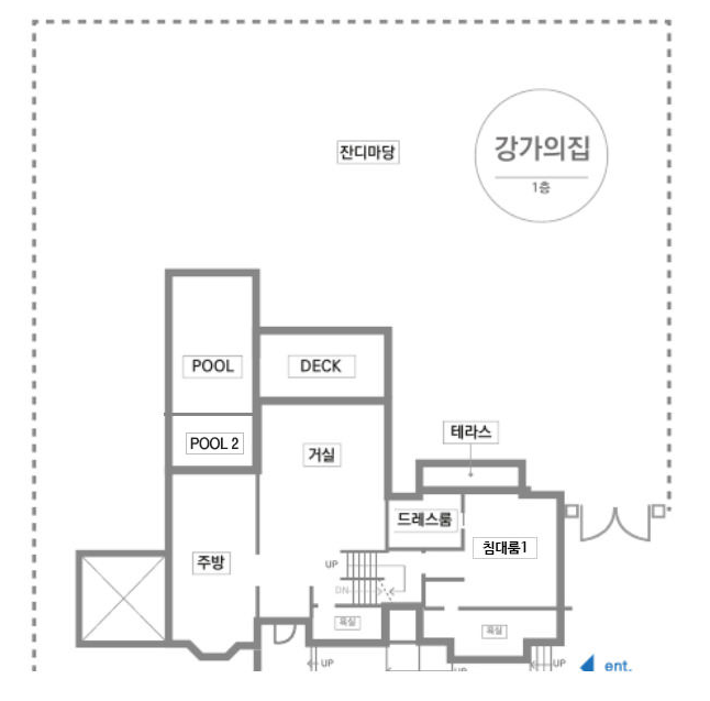 남성 임직원들이 사용한 <풀하우스> 1층과 2층의 구조 도입니다. 현장 사전답사가 어려운 분들이나 단체 관계자들은 이 구조도와 사진들을 참고해 보면 예약에 도움이 될 것 같네요.