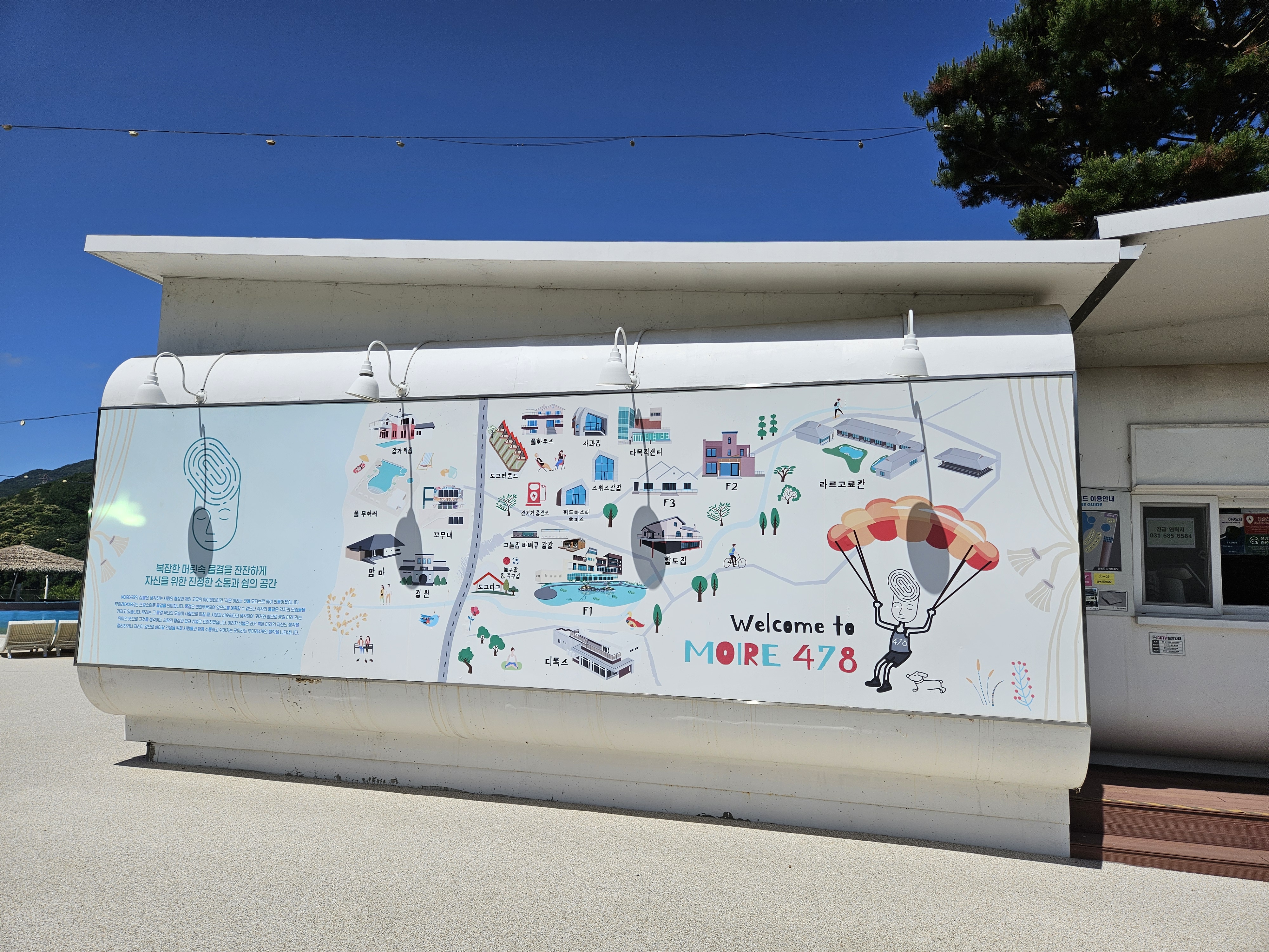 <무아레 478>, 숙소로 사용한 <강가의 집>과 <풀하우스>, 식사를 해결한 차이니즈레스토랑 <정원>, 인피티니풀 <풀(pool) 무아레>와 대운동장 활용 등을 소개해 봅니다.